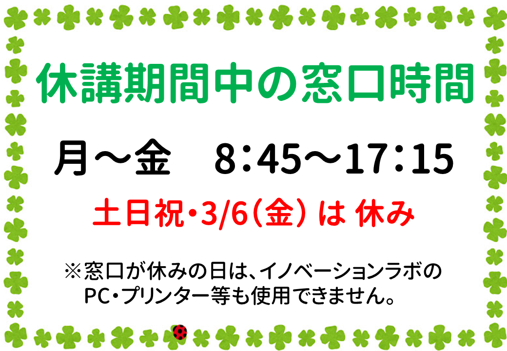 休講期間中の窓口時間について